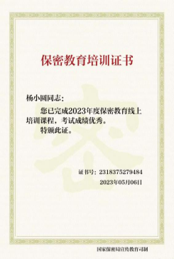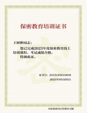 培训内容丰富多样,涵盖了保密法的基本概念、保密法规、保密技术和保密管理等。同学们通过网络学习的方式,深入了解了中国保密在线的相关课程,并通过考试获得了保密教育培训证书。培训期间,党员们认真学习了相关法律法规,领略了保密工作的重要性和保密工作中可能面临的风险与挑战。深入探讨了如何保护个人信息,防止信息泄露,以及在遇到泄密事件时应如何应对等问题。