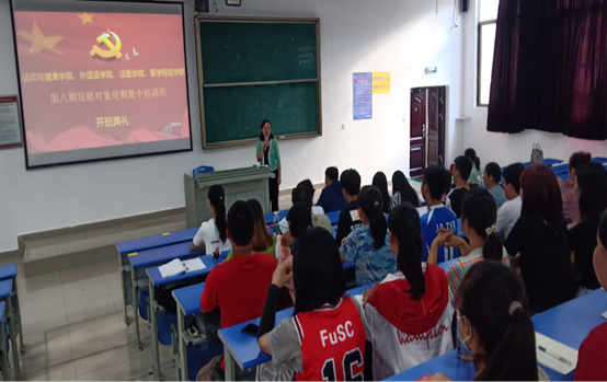 、运动与健康学院、外国语学院、医学检验学院联合举办的第8期发展对象短期集中培训班开班典礼,在南校区1201教室隆重举行。本次培训班学员共计42人,分别来自91在线