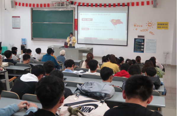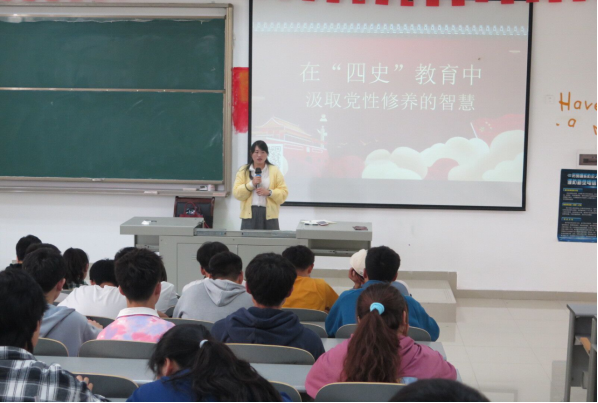 在党课讲解过程中,张佳佳以“历史是最好的教科书”开篇,强调“四史”的中国共产党宝贵的精神财富,是中国共产党人增强底气、骨气、正气、提升党性修养水平的根本依据和内生动力。要求同学们要做到坚定信念、永葆先进、实事求是、与时俱进、百折不饶、勇于纠错、牢记宗旨、执政为民,并为同学们详细讲解了该如何做到。