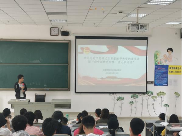2019级法医班于X4501开展学习习近平总书记在清华大学考察时的重要讲话“向中国特色世界一流大学迈进”。目的在于要让同学们响应总书记嘱托,要肩负历史使命,坚定前进信念,立大志、明大德、成大才、担大任,努力成为堪当民族复兴大任的时代新人,让青春在为祖国、为民族、为人民、为人类的不懈奋斗中绽放绚丽之花。