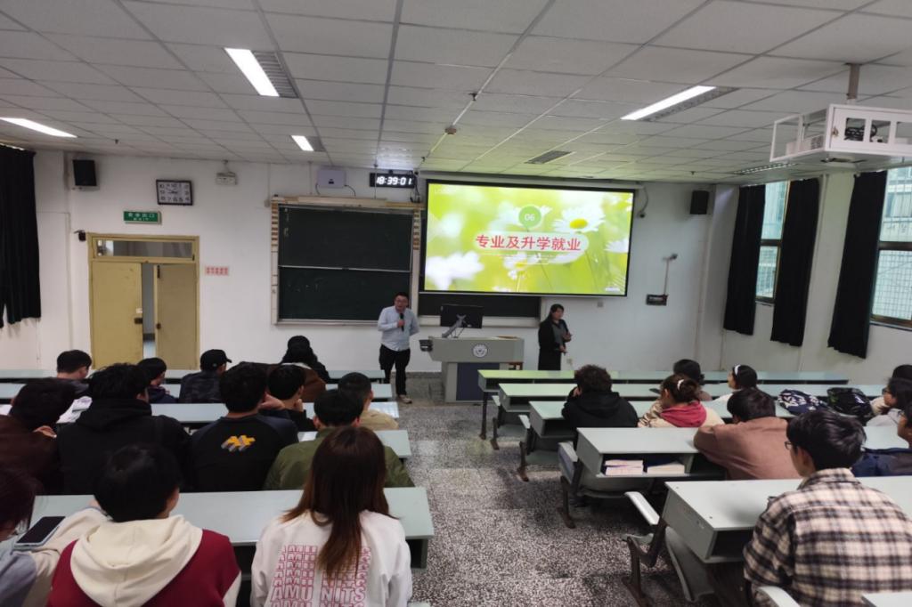 在心理健康方面,张佳佳结合大学生常见的心理困扰,分享了实用的情绪调节和压力缓解方法,鼓励同学们学会有效沟通,以开放的心态与他人建立良好关系。最后,针对同学们关心的专业及升学就业问题,班主任丁九阳、季晶焱、何军臣三位老师都一一耐心解答,为大家指引方向