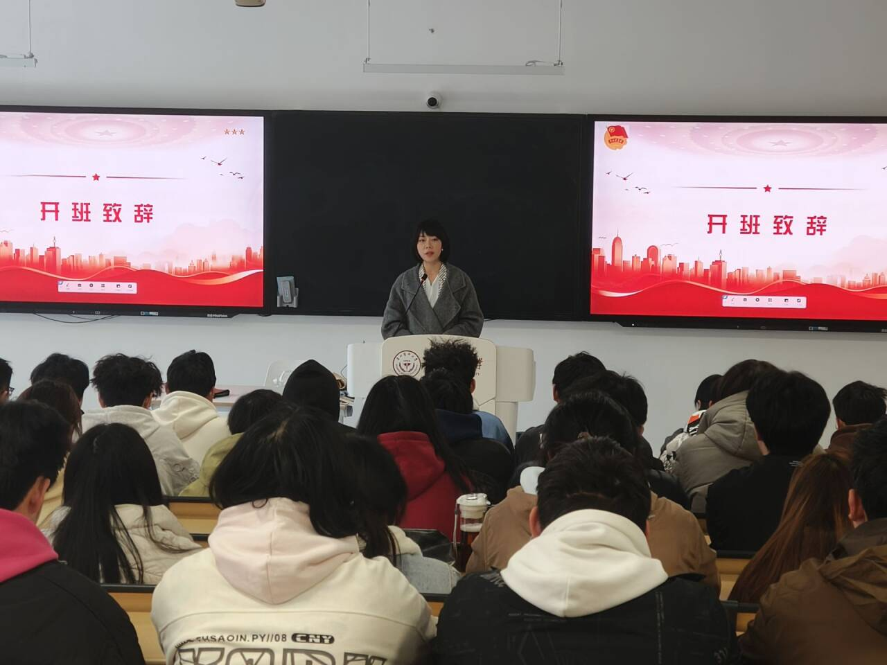 仪式中,季晶焱介绍了出席的领导和老师,并强调了团课的重要性。她指出,团课是青年提升思想境界、强化组织意识和培养责任感的关键平台,可以帮助学员在学习与实践中深入理解共青团精神,奠定个人成长与社会贡献的基础。