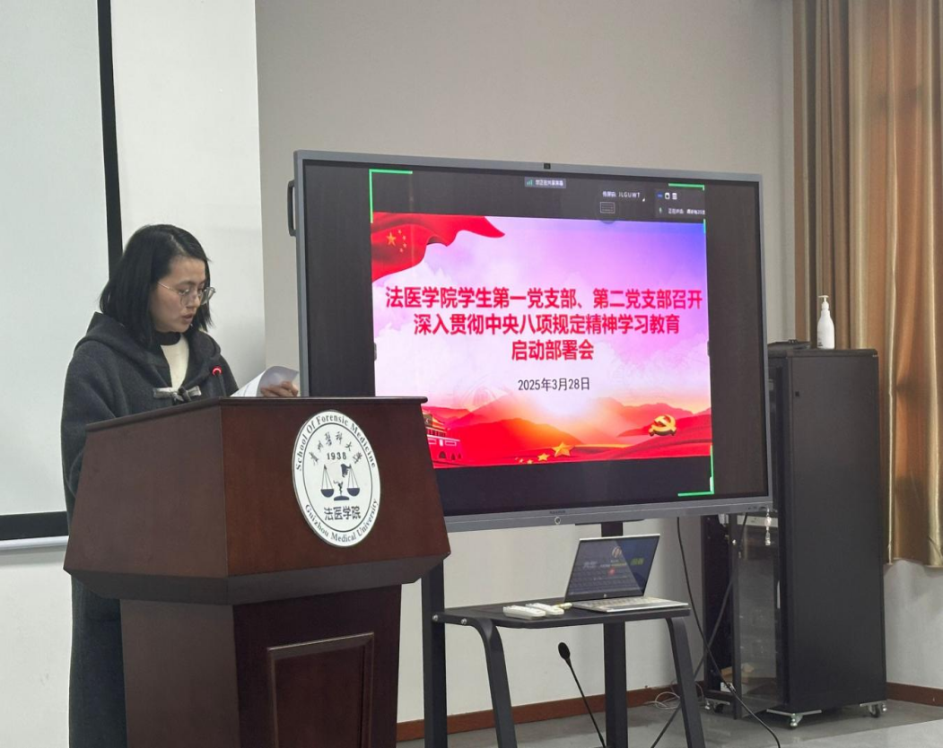 三楼阶梯教室组织开展“中央八项规定精神学习教育启动部署会议”。本次会议由学生第一党支部书记杨美庆主持。
