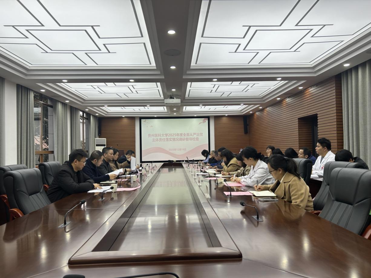 党委贯彻落实全面从严治党主体责任情况,希望督导组对其提出宝贵意见。学院根据贵医党通〔2025〕87号《关于开展2025年度全面从严治党主体责任落实情况调研督导检查的通知》文件要求,开展了全面从严治党情况自查,聚焦“两个责任”,研判政治生态,查摆问题并部署整改,持续推进党风廉政建设向纵深发展,巩固风清气正的良好政治生态。