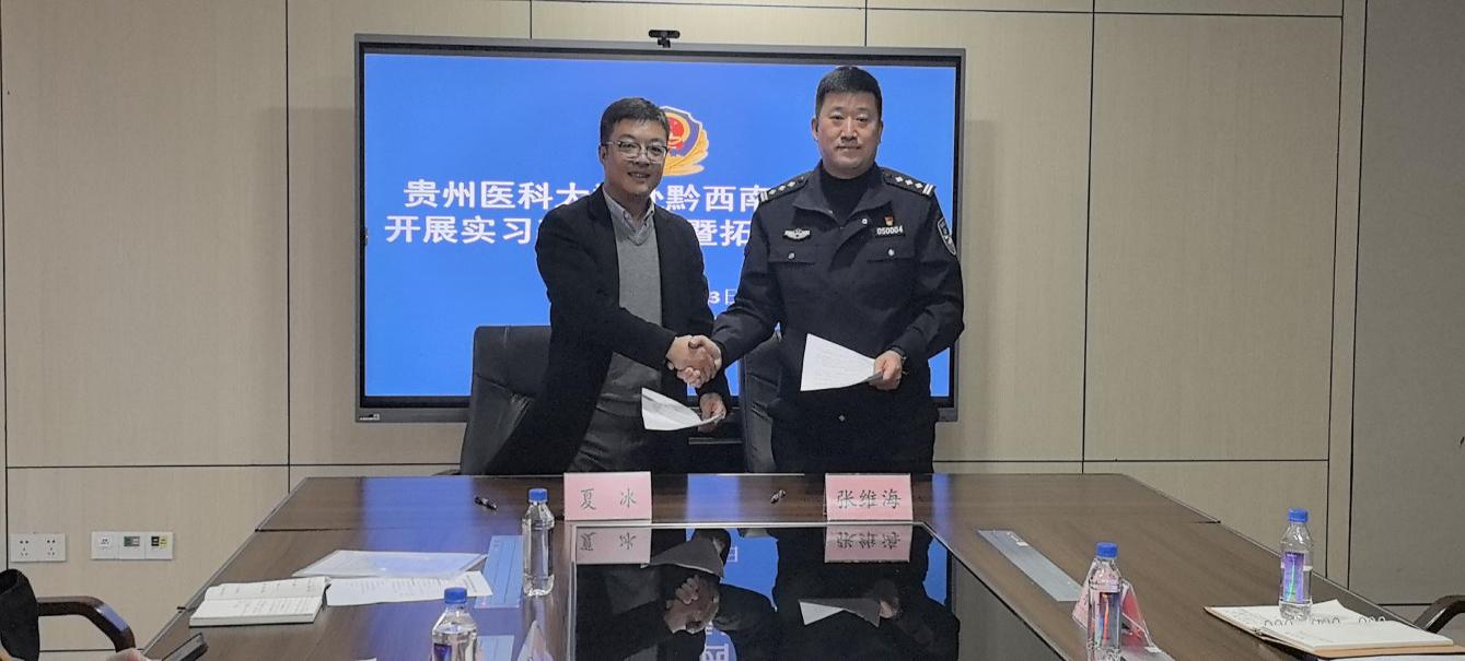党委书记封韬一行4人前往黔西南州公安局开展实习基地签约暨访企拓岗工作。黔西南州公安局党委委员、副局长张维海、刑侦支队政委王淑勋、刑侦支队刑事技术大队大队长慕容红焰及刑侦支队刑事技术大队部分民警参与座谈。