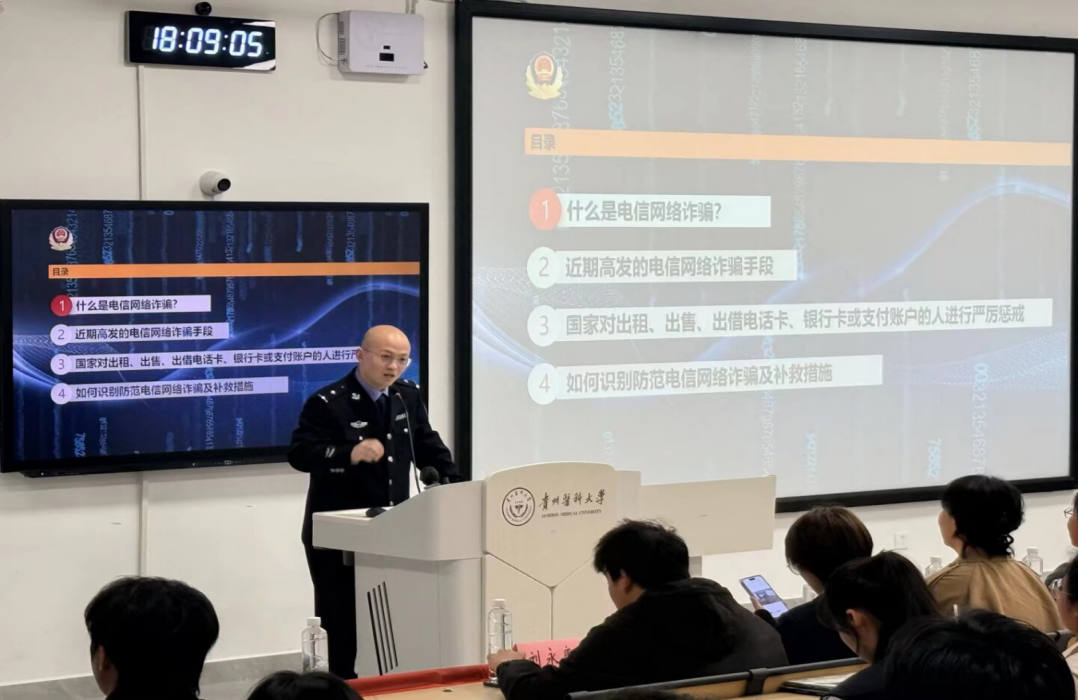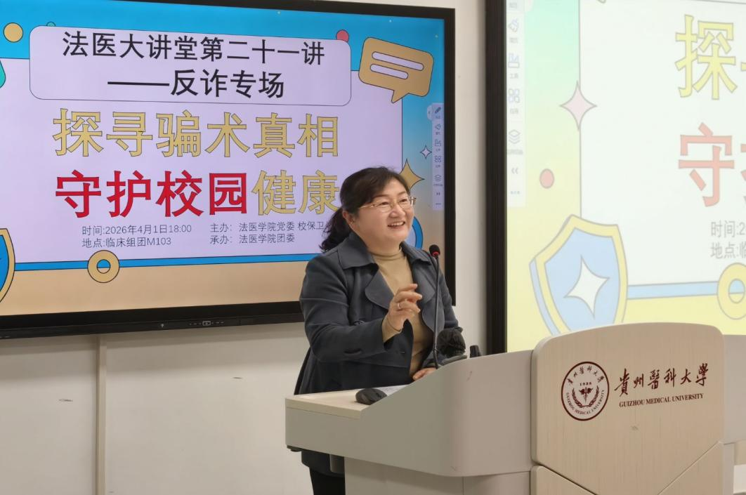 团委承办的“法医大讲堂”第二十一讲——反诈专场活动,在临床组团M103教室顺利举办。本次活动以“探寻骗术真相,守护校园健康”为主题,特邀黔西南州公安局反诈骨干、91在线