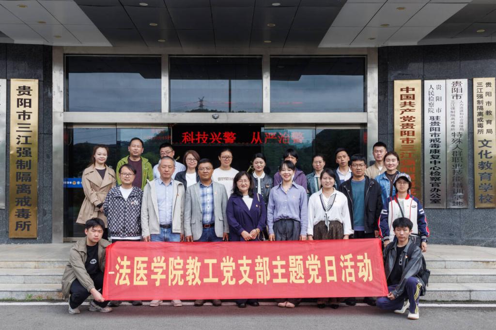 党委、麻醉学院党委、离退休工作处党总支、招就与继续教育党支部联合开展警示教育主题党日活动,组织党员干部前往贵阳市三江强制隔离戒毒所接受沉浸式警示教育。戒毒所副所长王哲,心理矫治中心主任覃元,教育科科长秦滔及警官郑辉全程陪同参观、细致讲解并开展专题授课。