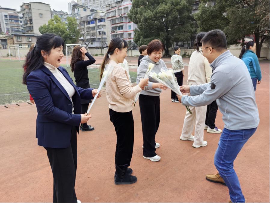 上午十点半,教师们纷纷进入足球场。夏冰代表学院向女教师们送上节日祝福和鲜花。接着,“凝心聚力·暖心你我”工会活动正式开始。