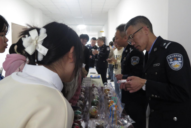 讲座结束后,宣讲团警官带领同学们参观仿真毒品模型,为大家重点普及毒品的外观形态、滥用方式、成瘾机制等相关知识,结合具体案例深刻揭示毒品对个人、家庭以及社会带来的危害,达到教育警示的目的。