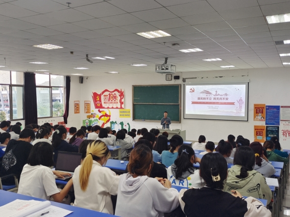 退伍军人何军臣老师主讲,2021级、2022级全体同学参与活动。