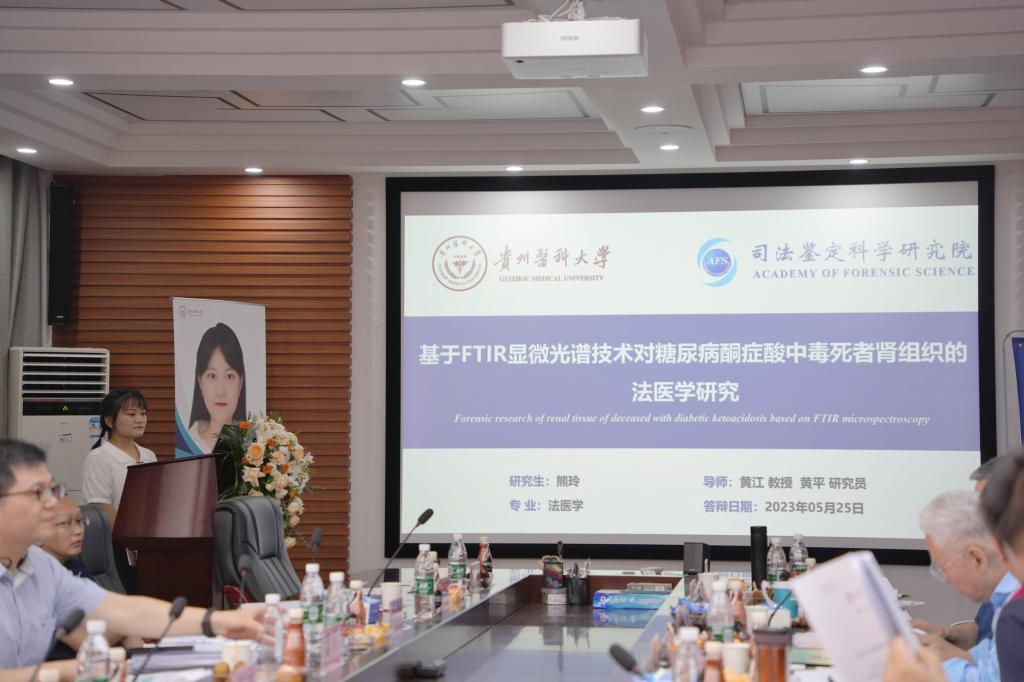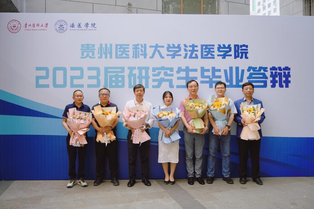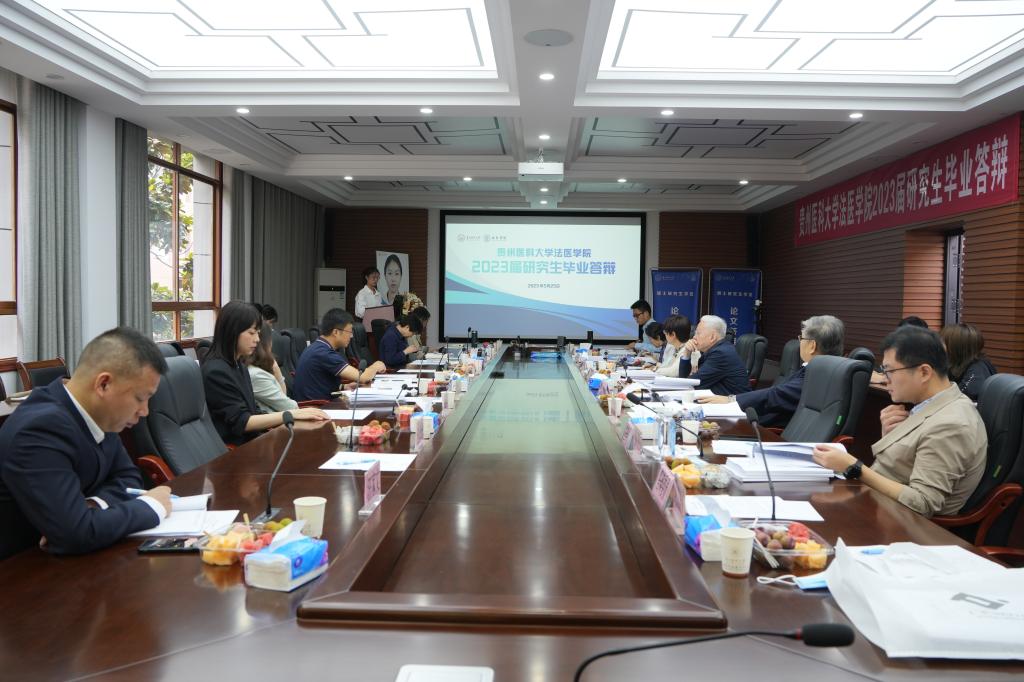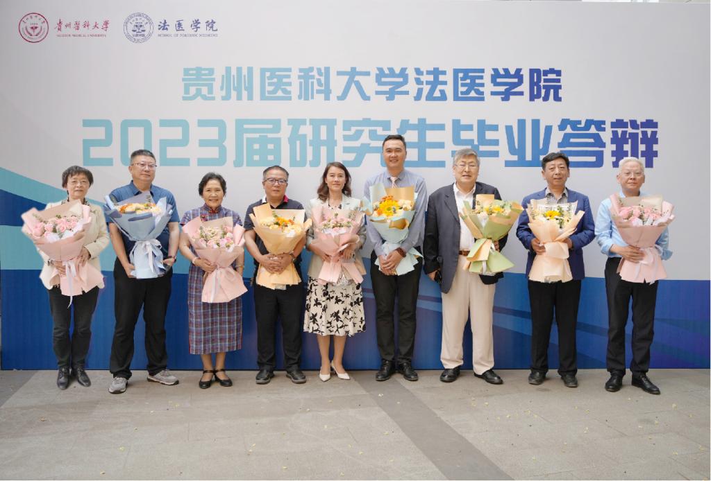 本届答辩主席分别由贵州医科大学副校长曾柱教授及博士生导师于燕妮教授担任。答辩委员来自国内各知名高校和研究机构,分别有西安交通大学王振原教授、华中科技大学刘良教授、南方医科大学王慧君教授、中国医科大学官大威教授、司法鉴定科学研究院陈忆九教授、黄平教授和夏文涛研究员。学院靳小业博士担任答辩秘书,党委副书记杨晖担任此次答辩的纪检委员。