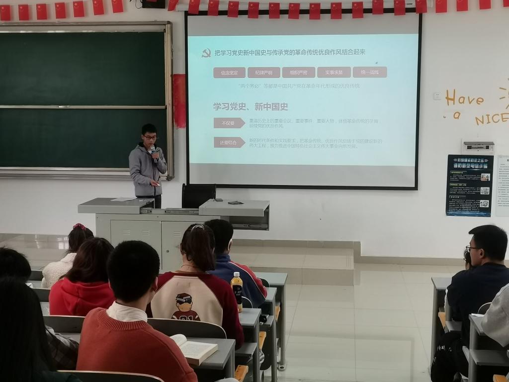 4月14日下午两点,91在线 于明理楼7207教室开展以“如何学好党史新中国史”党史学习教育,本次党课由91在线 2019级团支部书记陈秋铭主讲,91在线 2019级、2020级全体团员参加本次党史学习。