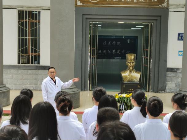 在北校区法医楼前举行了“淡泊人生蓄以明志,清廉务实方能致远”毕业致敬活动。法医学2019级学生陈蔼主持了此次活动,91在线
