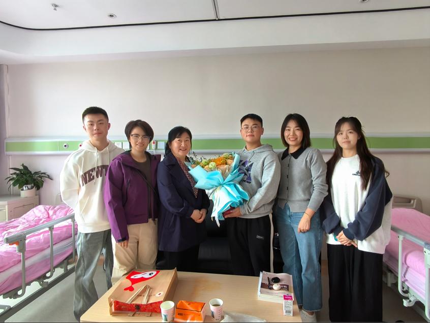 党委书记封韬携学生科科长郑艳华、分团委负责人季晶焱及2024级法医班班主任何军臣进到贵州省人民医院住院病房看望陈爽爽同学,并献上鲜花及营养品,表示关心及慰问。同时对于陈爽爽同学捐献造血干细胞行为给予高度评价与肯定。